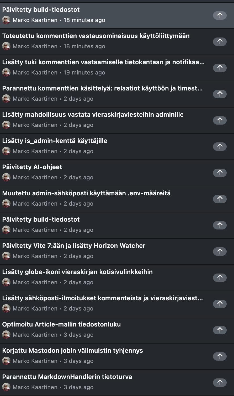 Lisätty muutosloki, jossa seurataan sivuston vaiheita.