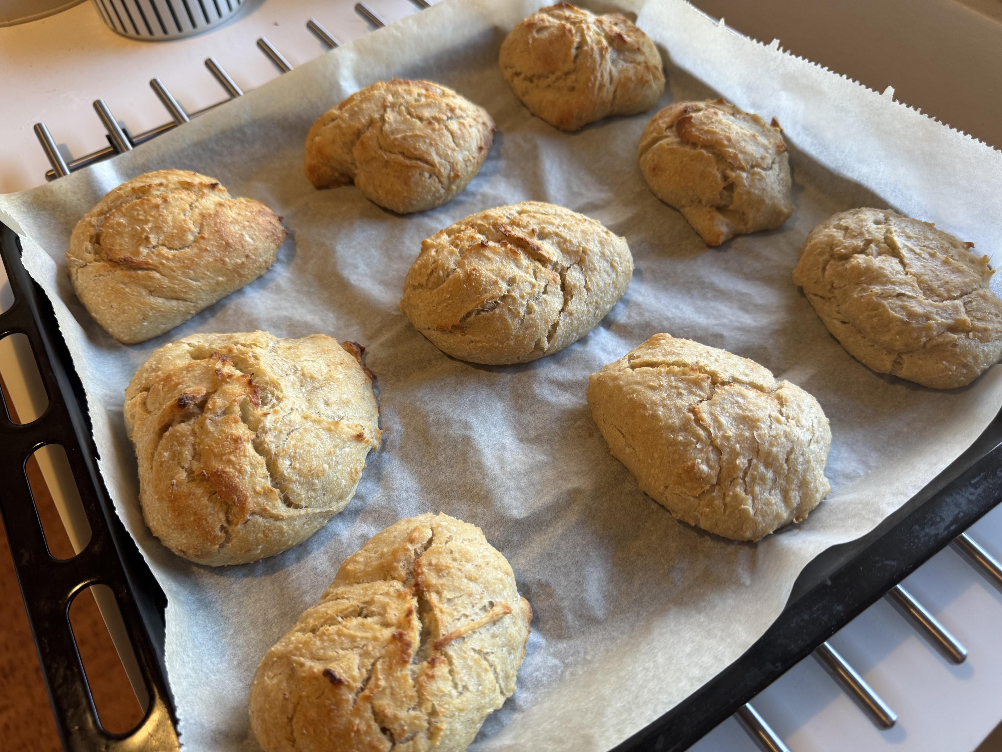 Tuli tekaistua kaurasämpylöitä hapanjuureen. Tai oikeastaan taikinan tein eilen ja paisteltiin aamulla. Kyllä taas kelpasi.